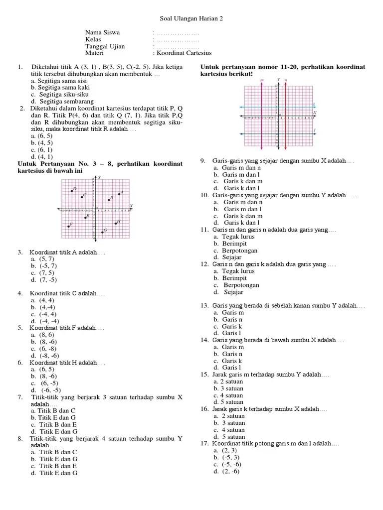 Koordinat adalah letak suatu titik(objek) yang ditulis ( x,y ) dimana x disebut absis dan y adalah ordinat. Contoh soal hots matematika smp kelas 8 materi koordinat cartesius. Kali ini aku akan membahas materi matematika kelas 8. Temukan informasi lengkap seputar materi pelajaran, rangkuman, latihan soal, tips belajar dan informasi seputar dunia pendidikan. Soal ulangan materi koordinat kartesius kelas 8.