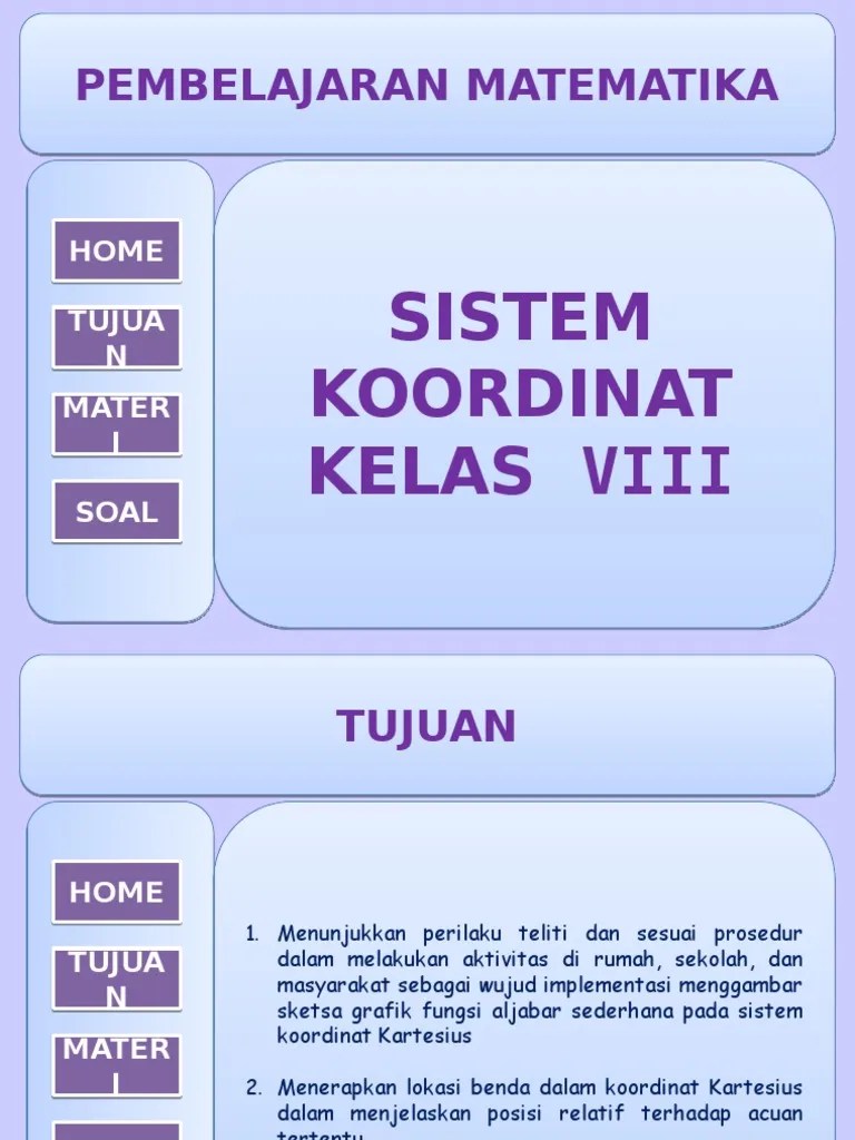 Sistem koordinat kartesius adalah suatu sistem untuk menentukan posisi suatu titik / benda / unsur geometri menggunakan satu atau dua atau lebih . Contoh soal hots matematika smp kelas 8 materi koordinat cartesius. Soal ulangan materi koordinat kartesius kelas 8. Ada lebih dari 3 modul pembelajaran beserta dengan latihan soal dan pembahasan. Play this game to review mathematics. Temukan informasi lengkap seputar materi pelajaran, rangkuman, latihan soal, tips belajar dan informasi seputar dunia pendidikan. Koordinat adalah letak suatu titik(objek) yang ditulis ( x,y ) dimana x disebut absis dan y adalah ordinat. Matematika · beranda · materi · kelas vii. Kali ini aku akan membahas materi matematika kelas 8. Belajar matematika materi koordinat kartesius untuk siswa kelas 8. Nah, buat kamu yang duduk di bangku kelas 8, tentu udah gak asing dengan koordinat .